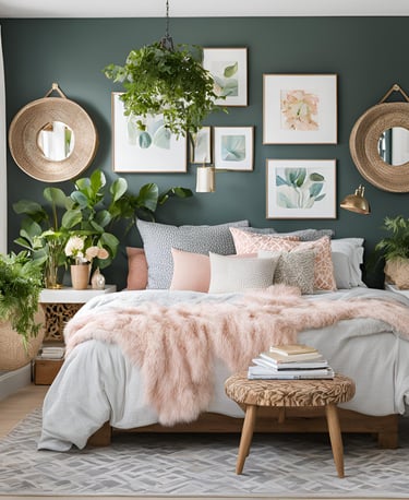 To achieve a boho chic and rustic look, opt for earthy tones like terracotta, muted greens, and warm browns. These shades evoke a sense of calm and nature, perfect for a cozy home environment. A fresh coat of paint on your walls or simple accent pieces like pillows or throws in these colors can elevate your space for little to no cost!