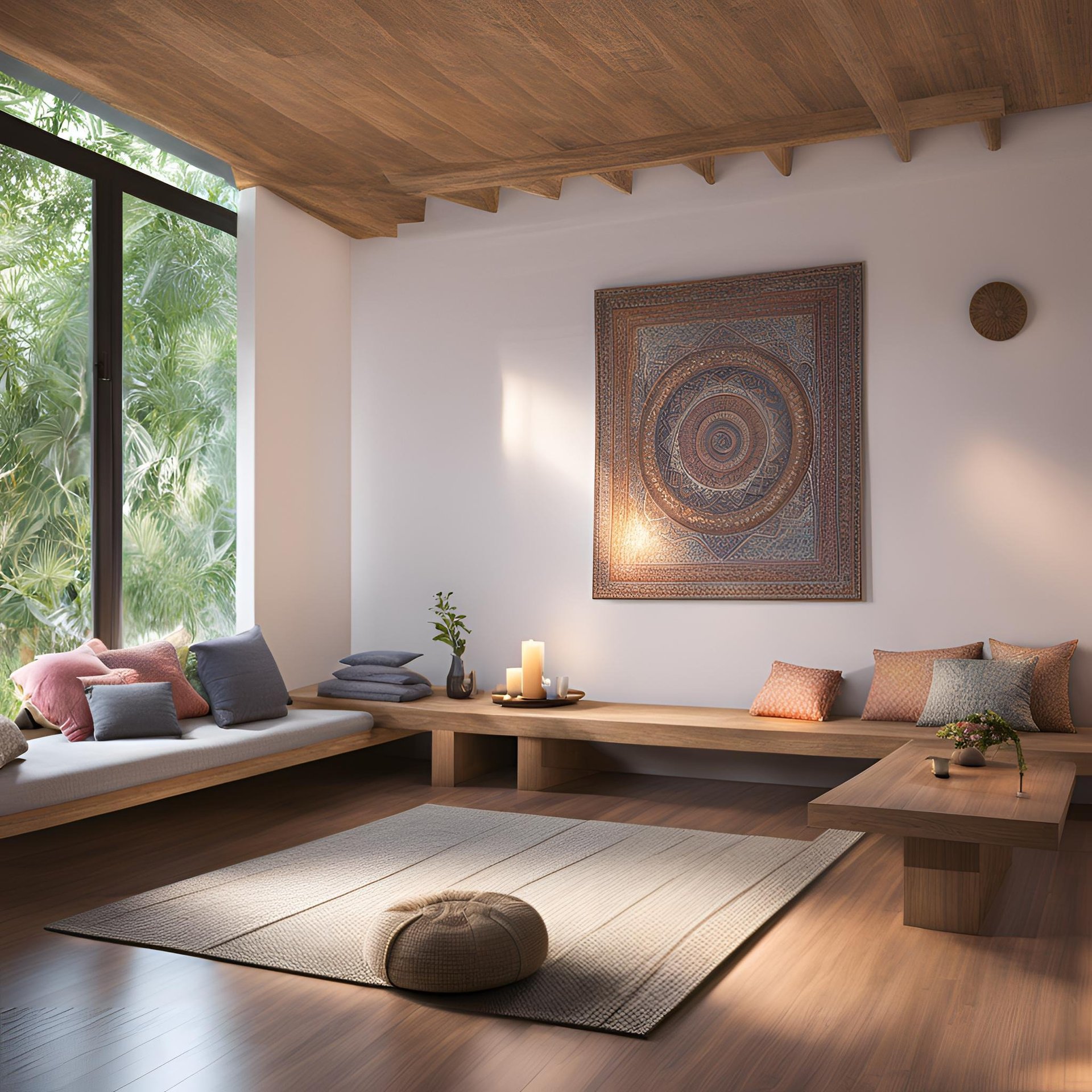The atmosphere of your yoga space plays a crucial role in helping you relax and connect during your practice. You can set the mood by adding elements like candles, incense, or essential oils that resonate with you. Soft lighting and calming music can also be very beneficial. Personalize the space with items that hold meaning for you, such as a small statue, crystals, or inspirational quotes.