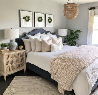 Don’t underestimate the impact of curtains. Selecting new window treatments can elevate the room’s style while providing practical benefits like light control and insulation. Choose curtains that complement your bedroom's color scheme and add a touch of elegance or coziness, depending on your preference. In addition to curtains, consider adding a new rug. A well-chosen rug can define the space, add warmth, and contribute to the overall aesthetic.