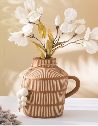 Boho Moroccan decor embraces natural materials like wood, rattan, and clay. Handcrafted pottery, woven baskets, and wooden furniture with carved details add an artisanal feel to your space. For an authentic touch, incorporate hand-painted ceramics or mosaic trays to enhance your tabletops and shelves.